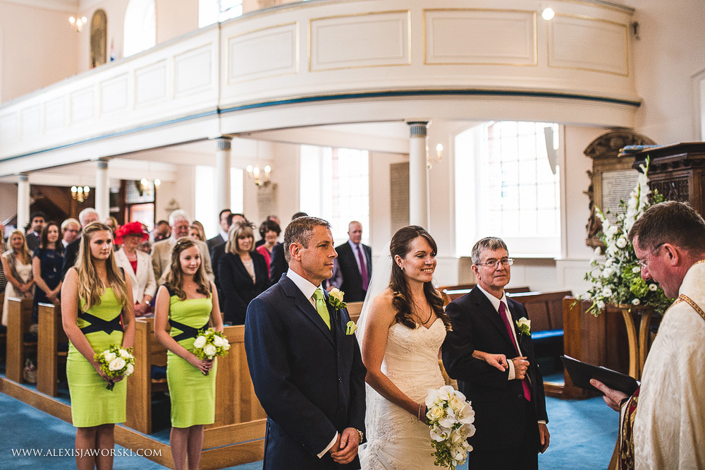 The wedding of Charlotte and Peter took place in Portsmouth. After covering the getting ready preparations, we headed out for the Naval base where the religious ceremony took place at St. Anne’s church. It was a lovely service, with a friendly vicar. There was a military feel to the morning with many of Charlotte’s friend in uniform and creating a guard of honour as they exited the church. After the ceremony, we went to the seaside for a few minutes to take a few portraits before heading out the Charlotte’s childhood home. A lovely marquee had been erected and the place looked beautiful. I quite like the special feel that there is when couples get married at their family homes.